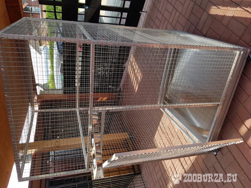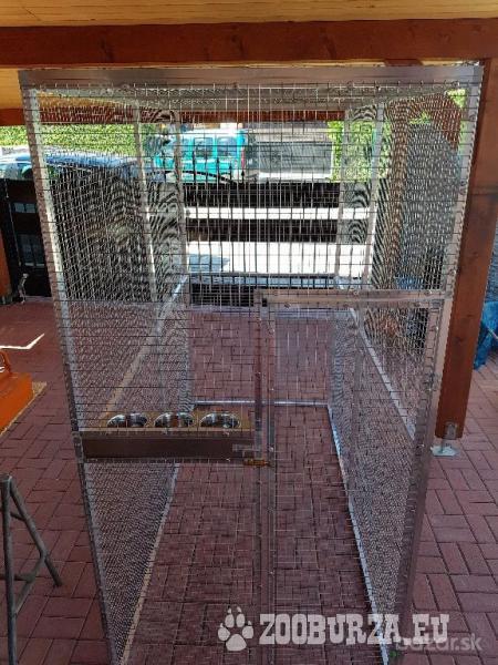 Popis: Predám novú hliníkovú voliéru pre papagáje s rozmermy 2x2x1m a 2x1x2m. Voliéra je vybavená otočnými kŕmnymi pultami s 3 miskami.Je potiahnutá kvalitným talianskym pletivom s okami 19x19mm.Väčšia voliera je úplne rozoberatelná. Doprava možná